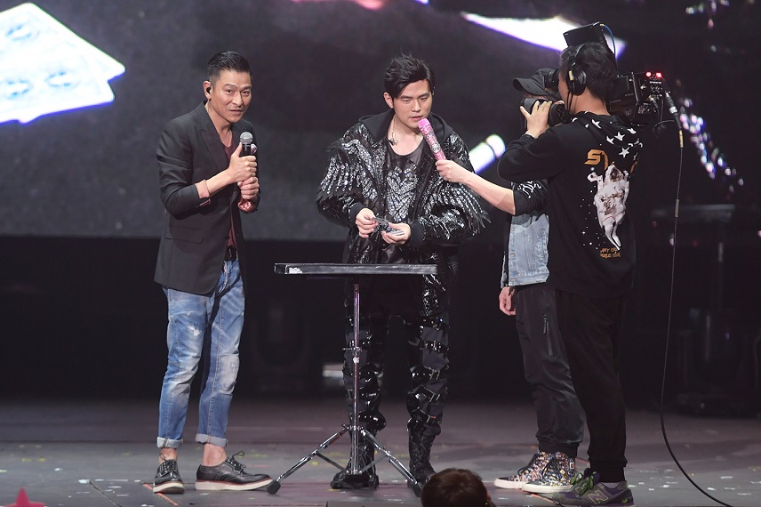 兩位實力派全能藝人在台上的開心互動讓歌迷大呼過癮!周杰倫聊到自己未出道時在憲哥餐廳打工彈鋼琴,看到劉德華來趕緊唱他想寫給劉德華的歌,還請憲哥趕快請劉德華聽一下,不過唱完之後劉德華還是在吃麵,聽完這段往事,華仔趕緊說:「你知道我吃麵在想什麼?我就想說這首歌真的太適合我!不過我的producer說這個不紅,我們找紅的人寫歌。」不過後來周杰倫出道後又寫了另外一首歌給劉德華唱,華仔笑說那時你紅了嘛,以前找寫歌都是這樣的,一番話解開當年的疑惑!難得同台演出,周杰倫還在劉德華面前以撲克牌變魔術,變魔術的過程中直呼緊張,笑說:「好緊張窩!第一次變魔術這麼緊張!好奇怪。」劉德華也笑說:「我也替你緊張!」不過緊張歸緊張,周杰倫還是在劉德華面前成功露一手漂亮魔術。